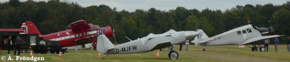 Fotos unten: Freitag, 23.08.2024, Junkers VIP-Gäste-Empfang. “JU A50” (D-MJFW) mit “JU F13” (HG-RIM) und der roten “Antonov AN2” (D-FKMB, “Red Eagle”) von “Morlock Aviation”.