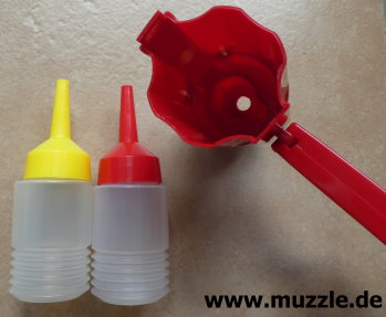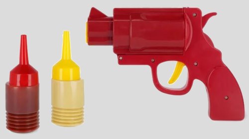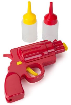 “beschossen” werden können. Dafür gibt es die, in der Optik eines Kipplaufrevolvers gestaltete: “Sauce dispenser gun”. ;-)