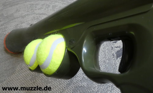 Übrigens: Auch wenn der Tennisball-Launcher ursprünglich nicht dafür vorgesehen ist, kann man sich damit