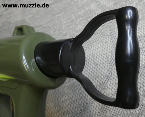 Ist die Feder gespannt, verschwindet der Stößelbolzen im Gehäuse des Launchers (Bild unten).