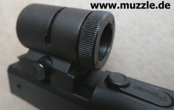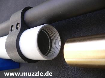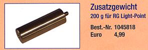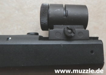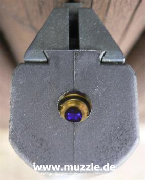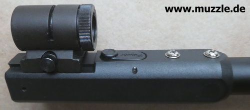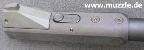 Im Kartuschenrohr am Vorderschaft können Zusatzgewichte untergebracht werden. Maximal 5 Stück je 200 g.