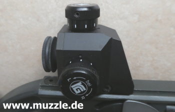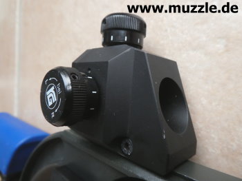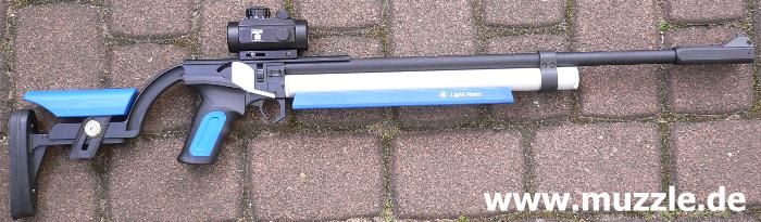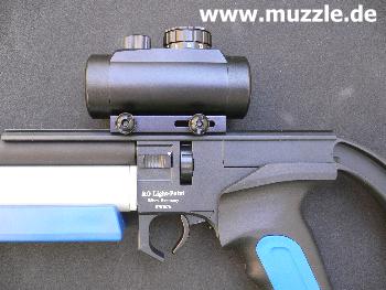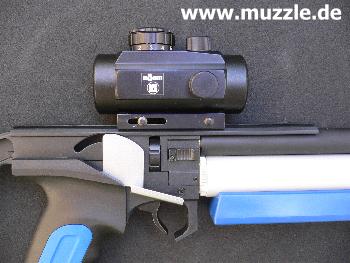 Bilder unten: Das Gewehr mit montiertem RG-Leuchtpunktvisier. Ein sinnvolles Zubehör, wenn es um schnelle Zielerfassung beim Action-Shooting geht.