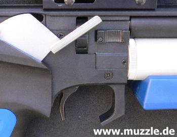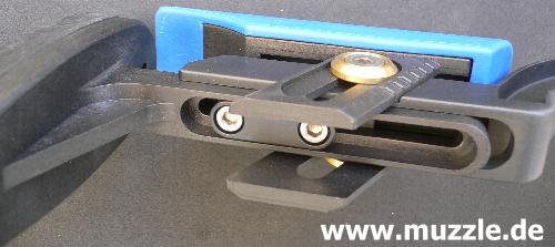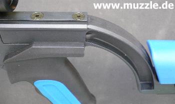 Außerdem kann der Handgriffabstand (Fingerabstand) zum Abzug justiert werden. Man löst dazu die Schraube im Griffboden (Kappe vorher abnehmen), bestimmt den optimalen Abstand und zieht die Schraube wieder fest.