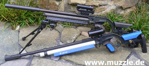 Bild oben: “Light-Point”-Lasergewehr mit RG-“Desperado” im Hintergrund