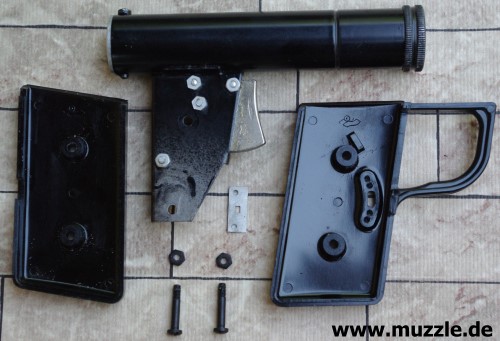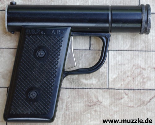Eine Meisterleistung deutscher Ingenieurskunst: Genial einfach, einfach genial und dabei so wirkungsvoll. ;-) Technische Daten und Funktion: Maße: 115 x 100 x 20 Gewicht: ca. 150 g Beschriftung: “D.B.P.a.” und “A.P.a.” (auf beiden Griffschalen) Typ: Federdruckwaffe, Einzellader Munition: chemischer Wirkstoff / Kampfstoffampullen (ca. 20 ml Inhalt) Wirkung: ätzender chemischer Stoff, der Atemnot, Tränenbildung mit vorübergehender Sehbehinderung und Reizung/Entzündung der Schleimhäute auslöst Reichweite: bis zu ca. 6 m Wirkung, empfohlene Schussentfernung max. 3 m (“Nahkampf”) Abzussicherung: Blockierschieber an der linken Griffschale Bauteile: Lauf, Bolzen, Schlagbolzenfeder, Schraubgewindering (Laufmündung), Griffstück mit Abzugseinheit und Sicherung, Griffschalen (linke Schale mit Bügel) Lieferumfang: Holzladestock als Spann-/Entspannhilfe, Wirkstoffpatronen (Ampullen rot gekennzeichnet), Übungspatrone (zum Füllen mit Wasser), Bedienungsanleitung (Gebrauchsinstruktion)