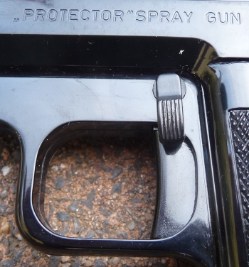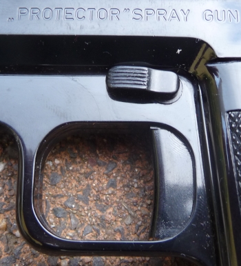 quasi um einen Spraybehälter in Pistolenform. Leider sind mit den beiden “Pistolen” keine Gasgebinde mehr überliefert, sodass eine Funktionsprüfung der Exemplare nicht mehr möglich ist. Dennoch handelt es sich hier