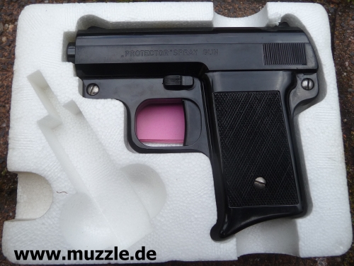 Bei der “Reck Protector Spray Gun” handelt es sich natürlich nicht um eine Schusswaffe (Gaspistole), sondern