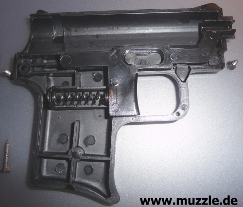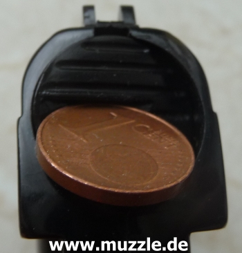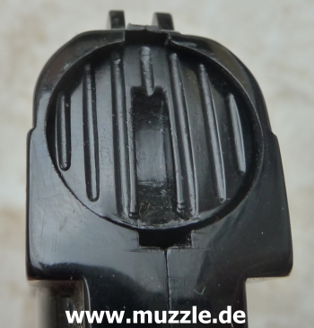 Sicherung: Schwenkhebel linksseitig blockiert den Abzug
