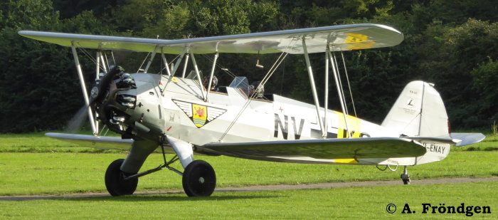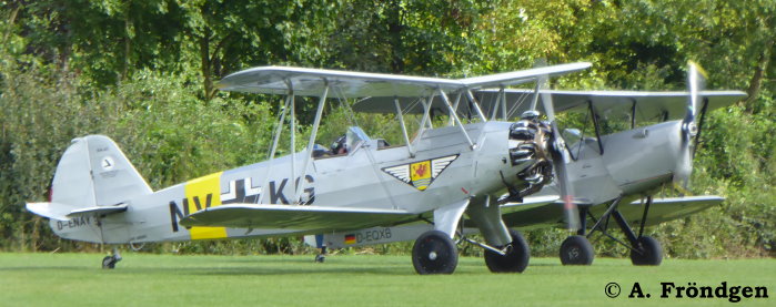 ”Focke-Wulf FW44 “Stieglitz” (QUAX) D-ENAY Flugplatz Kurtekotten (“LSC Bayer Leverkusen”€¯ EDKL), 10.09.2017 - Der zweite Doppeldecker auf den Fotos und im Video ist ein “Stampe-Vertongen SV-4C”, D-EQXB , (“QUAX”) Die “FW44” war in den 1930/40er Jahren das Standard-Schulflugzeug für die Ausbildung der Jagdflieger.