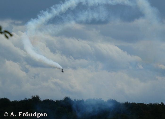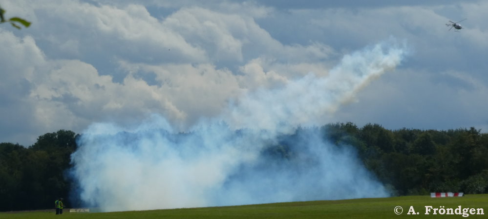 legendärer Jagdflugzeuge (Maßstab 1:4) spektakuläre Flugmanöver und Luftkampfsimulationen. Dabei kam es gegen ca. 14:45 h zum Absturz einer der Maschinen wegen eines Motoraussetzers. Der Nachbau eines einmotorigen US-Jägers vom