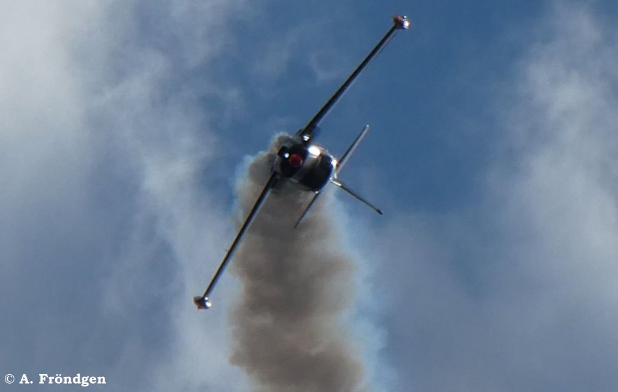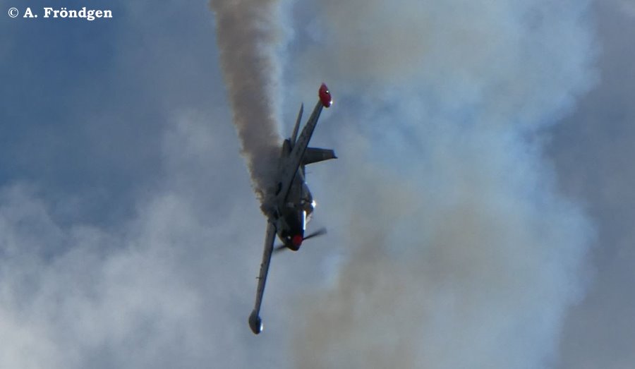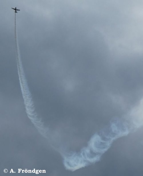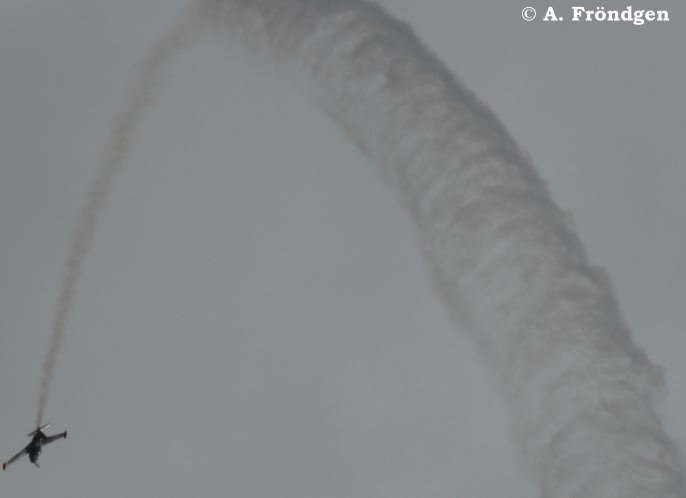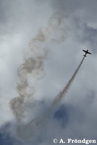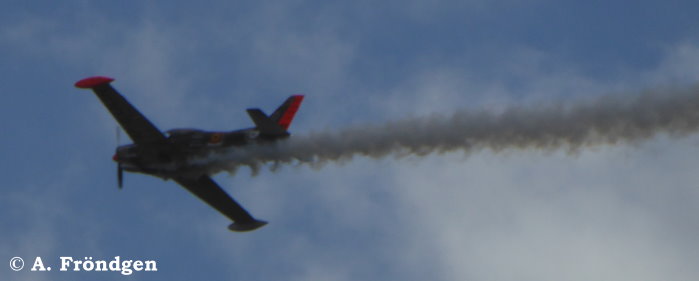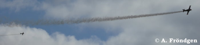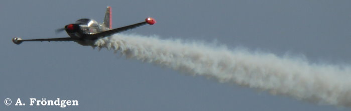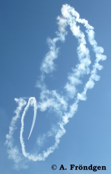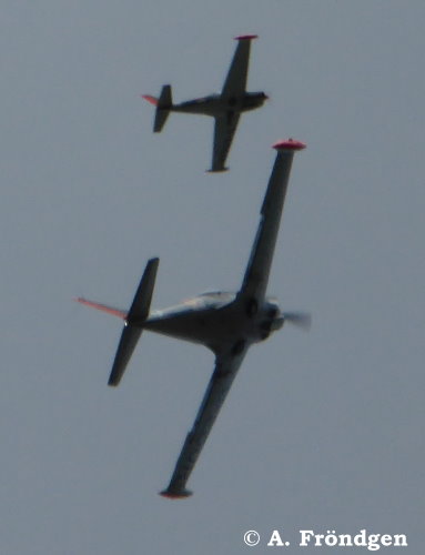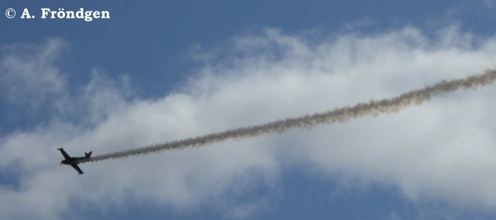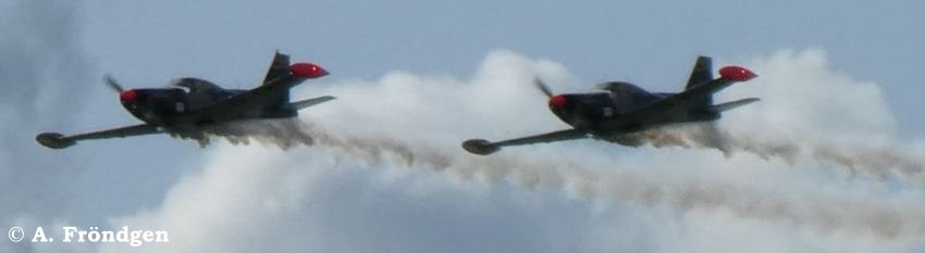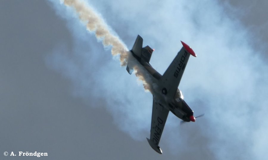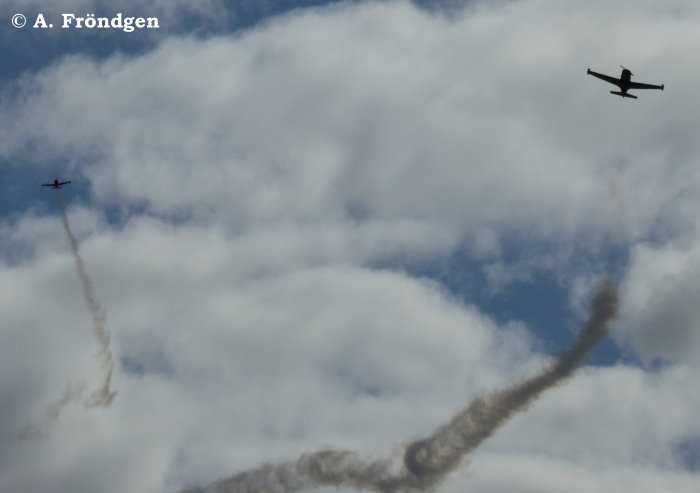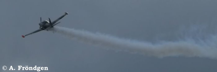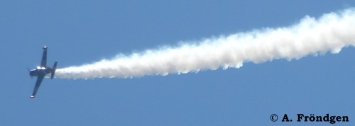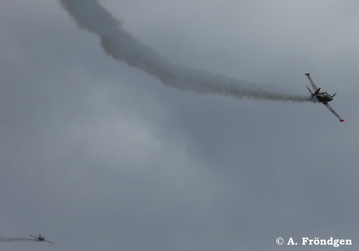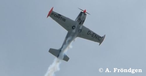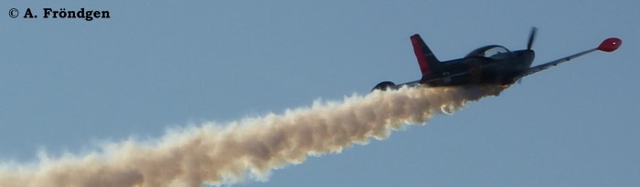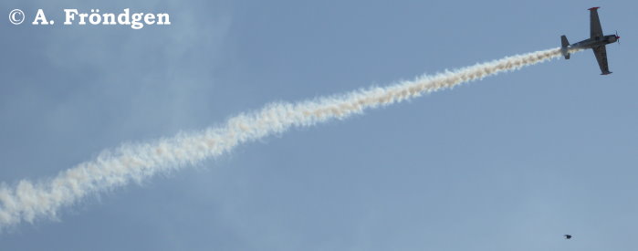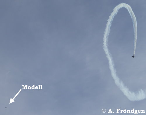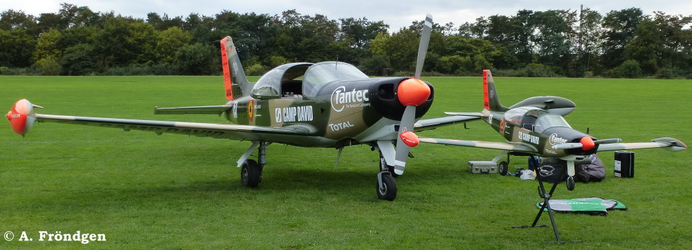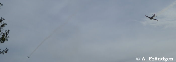 Fotos unten: Synchron-Kunstflug: Ralf Niebergall mit der “SIAI Marchetti SF-260” und sein Sohn Nico Niebergall mit einem RC-Modell im Verhältnis 1:3.