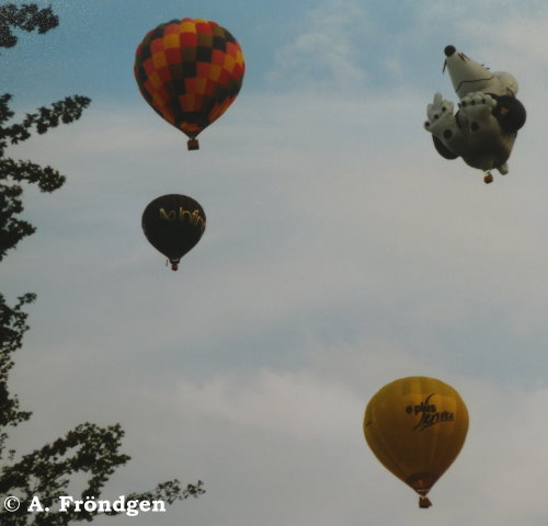 25.07.1998 - Leverkusen Ballons: “Kellog’s” D-OKCF, “Stoppelmarkt” D-OVEC, “Toyo-Reifen” D-OYOT, “Uli Stein”-Maus D-ONEE, “Infinity” D-OEAR, “Warsteiner” D-OWBZ, “Kaiser’s” D-OKSR, “borfrost” G-BWBE, “Lefax” D-OFAX, “PLUS” D-Speldorf