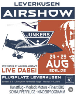 Flugplatzfest 24./25. August 2024 in Leverkusen (EDKL) Junkers A60 D-MSJU (Erstflug am 7.12.2023) Leverkusen, Flugplatz Kurtekotten (EDKL), Freitag 23.08.2024 - “Junkers” VIP-Gäste-Empfang auf Einladung des “LSC Bayer Leverkusen”