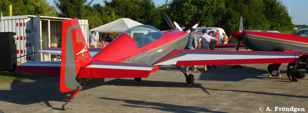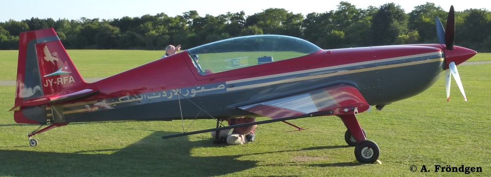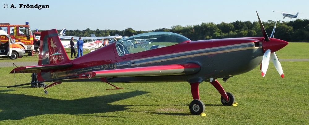 Die vier “Extra 300L”-Maschinen (JY-RFA, JY-RFB, JY-RFD, JY-RFE) der “Royal Jordanian Falcons” am Boden.