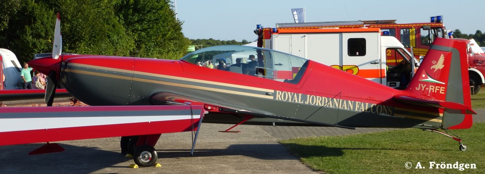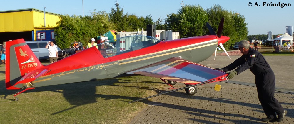 der in Deutschland gefertigten “Extra 300L”-Propellermaschinen sind beim jordanischen Militär ausgebildete Jet-Piloten. Sie werden vom jordanischen Königshaus sozusagen als “Botschafter der Lüfte” entsandt. Die Tour durch