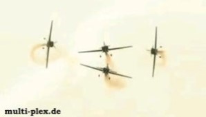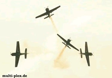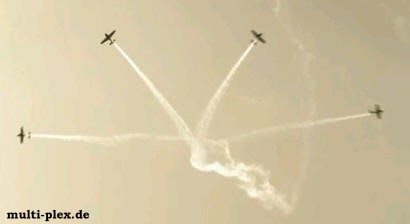 Achtung, Gegenverkehr! Da stockt so manchem Zuschauer der Atem, wenn sich die Maschinen in gegenläufiger Flugrichtung und mit hoher Geschwindigkeit aufeinanderzu bewegen.
