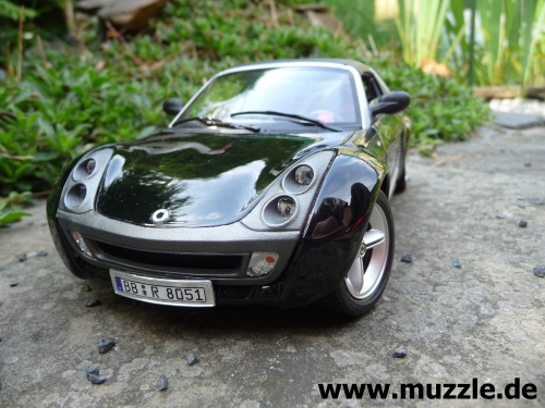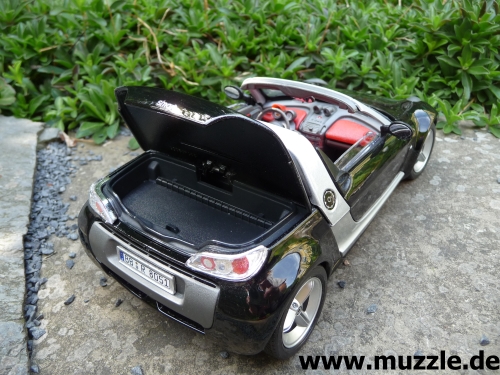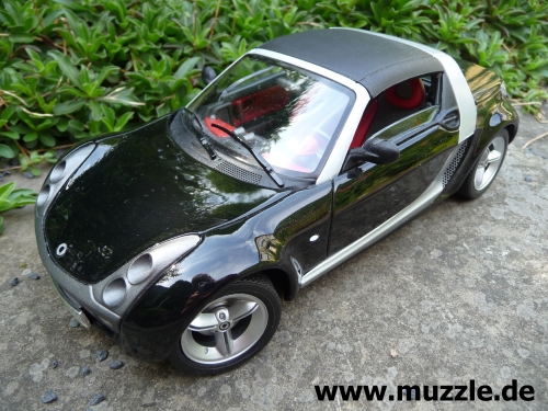 “burago” Modell Smart Roadster, schwarz/silber, Maßstab 1/18, Made in Italy