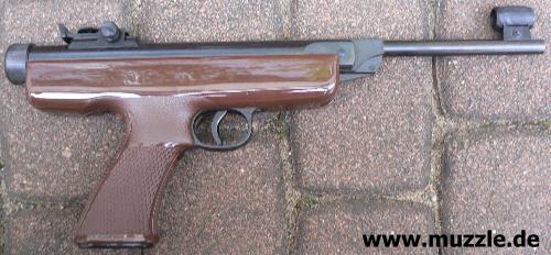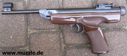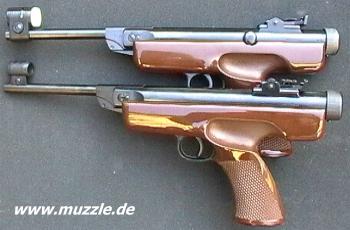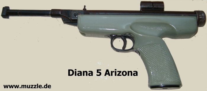 Bemerkung: Die Waffe wurde in den USA auch unter der Bezeichnung “Hyscore Model 815 T” vermarktet.” Fertigungszeitraum: 1958 - 1978 Preis 1974: 126,- DM Sondermodell: “Diana 5 Arizona” Bild unten: Diana 5 Sondermodell mit Holzgriffstück.