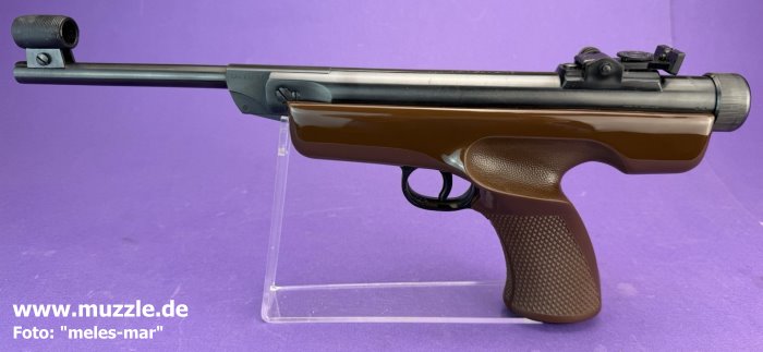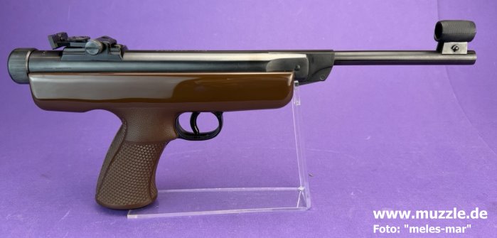 Bemerkung: Die Waffe wurde in den USA auch unter den Bezeichnungen “Hyscore Model 815 T” und “Winchester 353” vermarktet. Fertigungszeitraum: 1958 - 1978 Preis 1974: 126,- DM Sondermodell: “Diana 5 Arizona” Bild unten: Diana 5 Sondermodell mit Holzgriffstück.