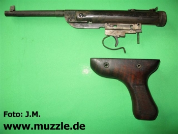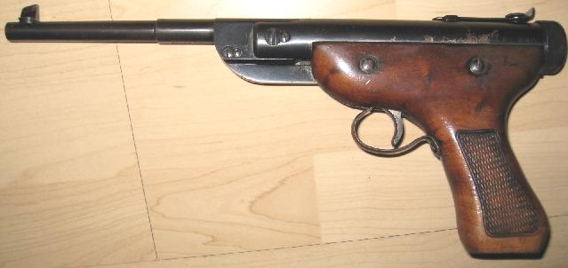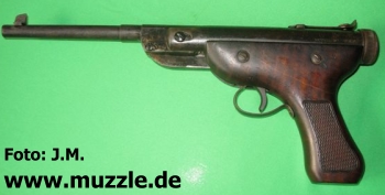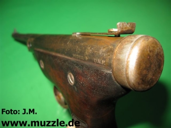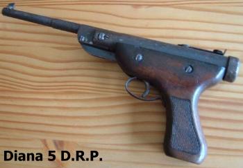 Bild unten: Diana 5 (“V”) mit Stempelung “D.R.P” (Deutsches Reichspatent) und Holzgriff der frühen Version. Fertigung 1933 - 1945
