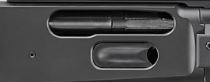 Laden Bilder unten: Die Ladeöffnung (Loading Port) ür die Stahl-BBs (Stahlrundkugeln im Kaliber 4,5 mm) findet sich auf der linken Waffenseite, direkt neben dem Kornträgerbauteil. Durch Eindrücken und Hochschieben kann der Magazinschacht für die - sage und schreibe - bis zu 650 Geschosse geöffnet werden. Die Kugeln werden einfach hineingeschüttet.