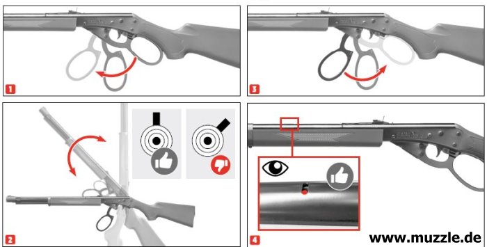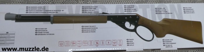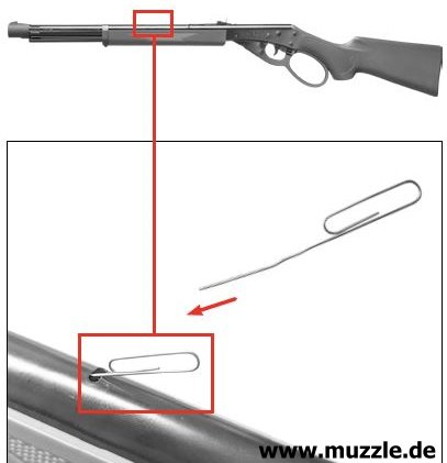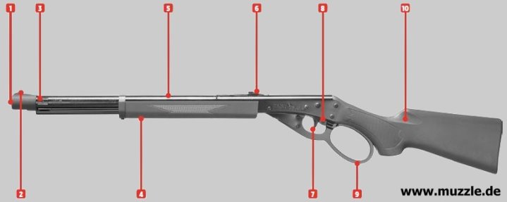 Diese Magazin-Einrichtung ist zum Beispiel schon vom “Daisy Red Ryder”-Gewehr bekannt, welches wohl durchaus als Vorbild für das UMAREX-”Marlin Lever Action Rifle” gelten kann. (Bilder unten)