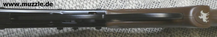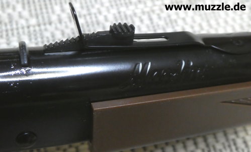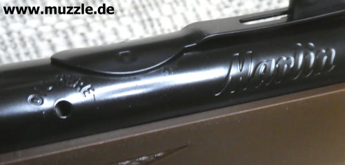 Einige Zentimeter vor dem “Marlin”-Schriftzug befindet sich auf der linken Waffenseite eine kleine, runde Öffnung, umrahmt vom Beschriftung “OIL HERE”. Dies bedarf sicher keiner weiteren Erörterung. ;-)