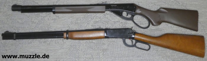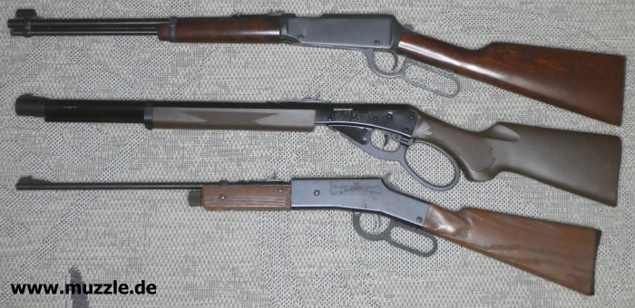 Anhang: Das “Marlin Lever Action Rifle” befindet sich bei mir in bester Gesellschaft weiterer Unterhebelrepetierer. Foto unten: Das “Daisy 1894 Spittin’ Image - Western Carbine”. Ebenfalls eine Federdruckwaffe.