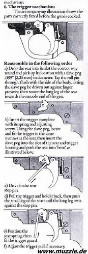 vorne Schwenken des Laufs, wird die Feder gespannt. Das Laufhinterende wird mit einer umgreifenden Mechanik arretiert. Der Spannvorgang lĂ€uft folgendermaĂen ab: ZunĂ€chst wird der linksseitige