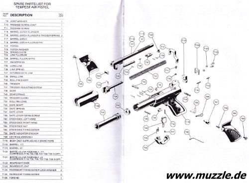 Typ: Kipplauf-Federdruckpistole, Einzellader