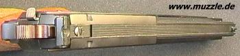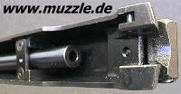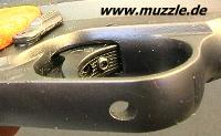 Bild unten mitte: Blick auf den Laufansatz bei aufgeschwenktem Pumphebel. Das Diabolo wird direkt in den Lauf geladen.