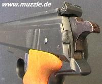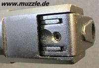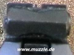 Visierung: Kimme horizontal und vertikal justierbar, feststehendes Balkenkorn (Bilder oben rechts und unten rechts)