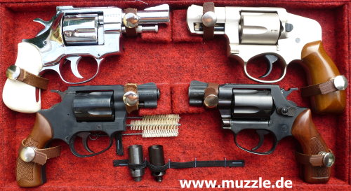 Foto unten: Von oben links nach unten rechts: “Arminius HW1G” (verchromt), “IWG Special Force” (vernickelt), “Arminus HW 37” und “ERMA EGR 66” .