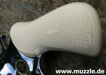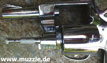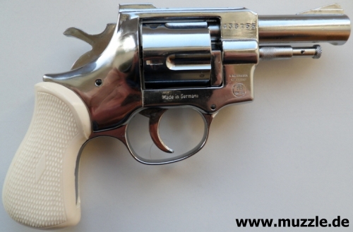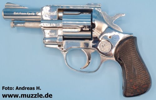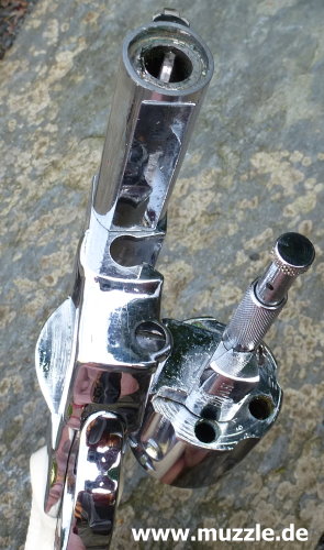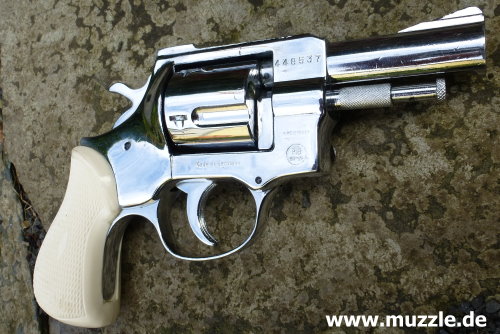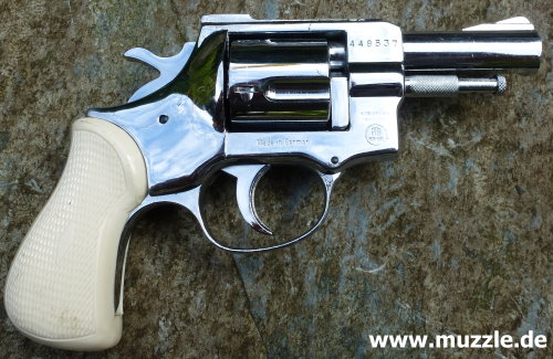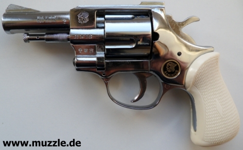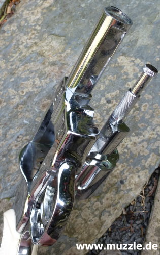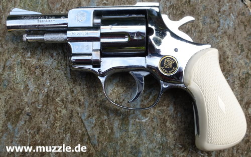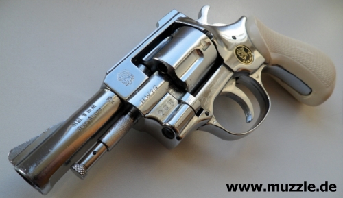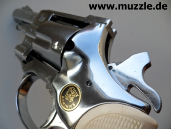 Länge: 187 mm Höhe: 116 mm Breite: 35 mm Gewicht: ca. 730 g Ausführung: Rahmen Druckguss - Trommel, Hahn, Abzug und Ausstoßer aus Stahl - Brüniert/rotbrauner Griff - Chromfinish/weißer Griff