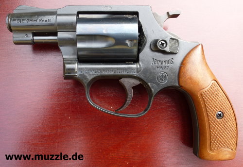 Kaliber: 9 mm Knall (.380) Trommelkapazität: 5 Patronen (Platz-/Reizstoffmunition) Visierung: Starr (nicht justierbar) Abzug: Single Action / Double Action Länge: 160 mm Höhe: 110 mm Breite: 33 mm Gewicht: 530 g (leer)