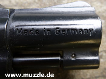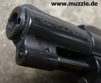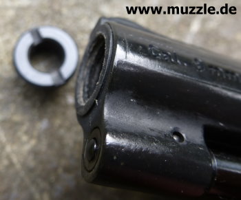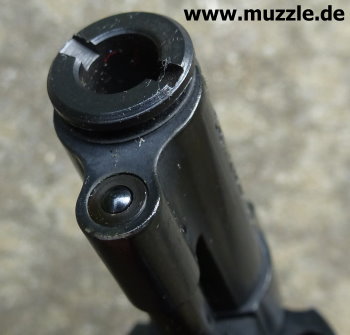 Lauf Fotos unten: Laufansicht des “HW37” mit Sperre im Innern und dem Laufgewindeschutzring. Das Laufgewinde ist angelegt für das Anschrauben des Abschussbechers für pyrotechnische Munition.