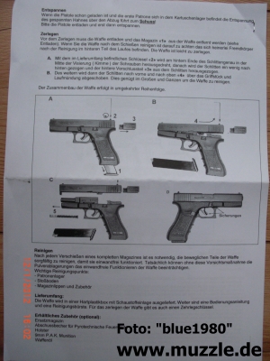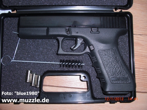 Lieferumfang: Waffe, Reinigungsbürste, Inbusschlüssel, Bedienungsanleitung im Kunststoffkoffer.