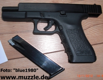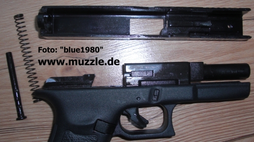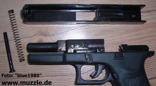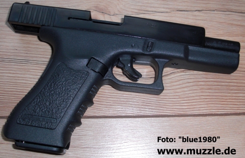 Ausführung: Polymergriffstück, Druckgussschlitten, Innenlauf, Auszieherkralle und Hahneinsatz aus Stahl