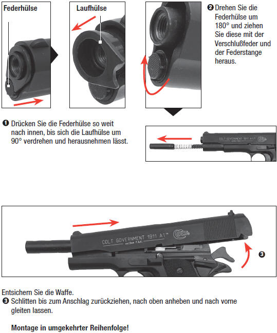 Demontage Vor der Demontage sollte die Waffe unbedingt entladen und möglichst gesichert sein.