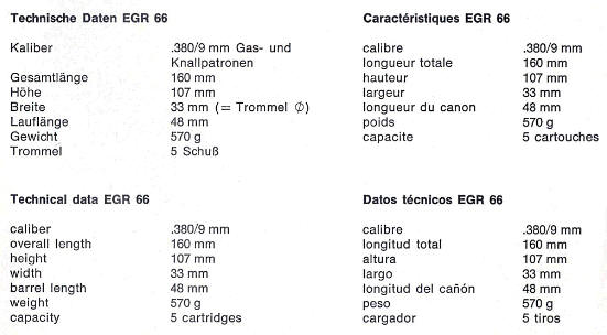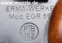 Hersteller: ERMA-Werke, Waffen- und Maschinenfabrik GmbH, 8060 Dachau Fertigung: Made in Germany Modell: “EGR66” PTB-Nr.: 162 Beschusszeichen: Nitrobeschuss, Beschussamt Mellrichstadt, “KE” (“K”=9 “E”=4 -> Jahr 1994) Vorbild: “Smith & Wesson Model 36 “Chief’s Special” Baugleiches SSW-Modell: “IWC Chief” bzw. “IWG Chief” - (ab Juni 1992)