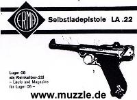 Selbstladepistole mit der Bezeichnung „LA .22“ angepriesen wird. „ERMA“ hatte also einst auch eine Kleinkaliberpistole im 08-Design im Programm (s.Abb.).