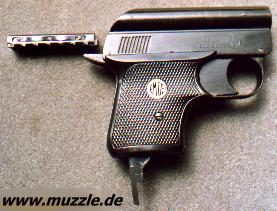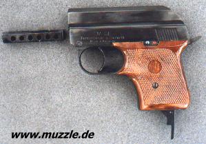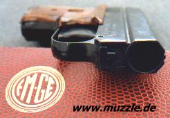 Bilder unten: Version mit braunen Griffschalen und seitlich abgeflachtem Laufmantel