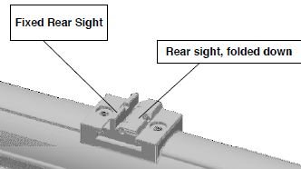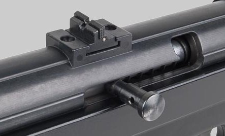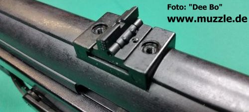 Bilder unten: Das Kimmenbauteil ist mit einer verschieden hohen Doppelkimme für die Höhenjustierung ausgerüstet. Das hintere Kimmenblatt lässt sich bei Bedarf umlegen.