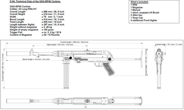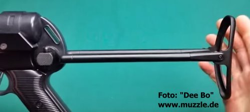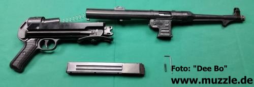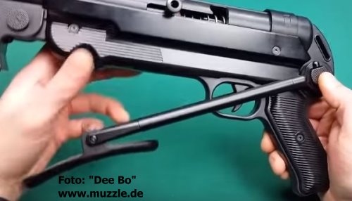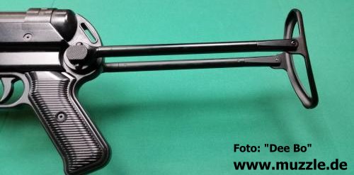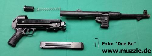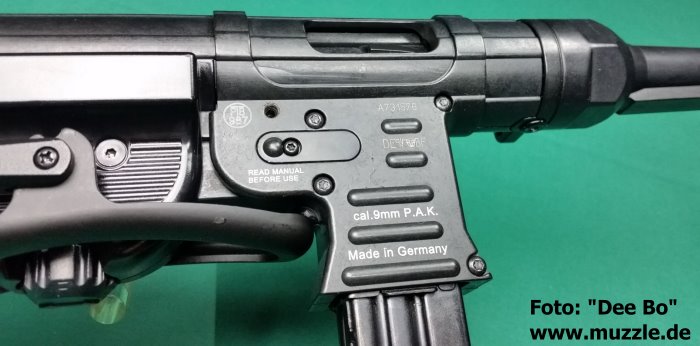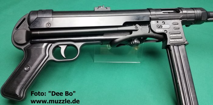 Rechtliches: Besitz der Waffe frei ab dem vollendeten 18. Lebensjahr. Öffentliches Führen nur erlaubt mit dem “Kleinen Waffenschein”, zwingend in Verbindung mit einem gültigen Personaldokument (Ausweispapiere). Danksagung: Vielen Dank an “Dee Bo” für die Übermittlung und Freigabe seiner Fotos sowie Video-Screenshots zur Publikation auf “muzzle.de”. Mein weiterer Dank gilt dem Leser “The Godfatherhahn” für die Hinweisgebung auf einen grundlegenden, sachlichen Fehler. “Dee Bo’s” Video zur “MP40”: https://www.youtube.com/watch?v=qc1r2Pci3G4 (Review mit Schusstest)