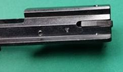 Bild oben: Der Druck der Pulvergase katapultiert den Verschluss zurück, wobei der in den Patronenrand greifende Auszieher die Patronenhülse soweit mit zurücknimmt, dass sie vom Auswerfer nach rechts durch das Hülsenauswurffenster ausgeworfen wird. Bild unten: Blick in das geöffnete Hülsenauswurffenster der “MP40” 9 mm P.A.K..