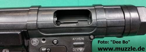 Ausführung: Druckgusskorpus mit Kunstoffkomponenten, Funktionsteile Stahl, Stahlstoßboden, Magazin aus Stahlblech Lieferumfang: Waffe, Ladehilfe, Inbusschlüssel, Pufferkartusche, Reinigungsbürste, Bedienungsanleitung im Pappkarton. Hinweis: Ein Mündungsgewinde für einen Becher zum Abschuss von Pyromunition ist nicht vorhanden. Tipp: Die Waffe sollte beim Schießen nicht mit einer Hand am Einsteckmagazin festgehalten werden, da dies u. U. zu Problemen bei der Munitionszuführung führen kann. Richtig ist es, die Hand am Handschutz hinter dem Magazin oder alternativ am festen Magazinschacht zu platzieren. Preis 2015: 399,- EUR (UVP) Preis für Reservemagazin: 50,- EUR (UVP)