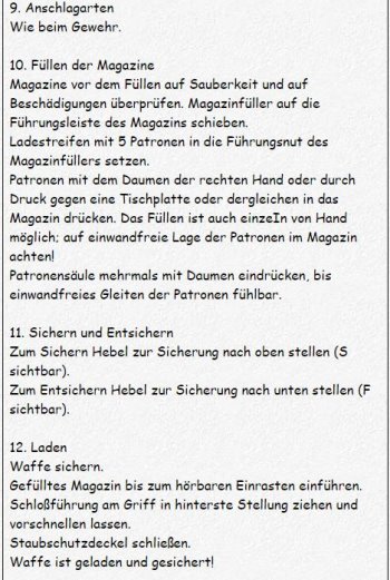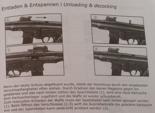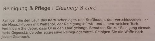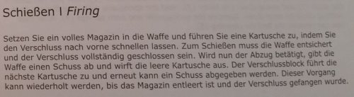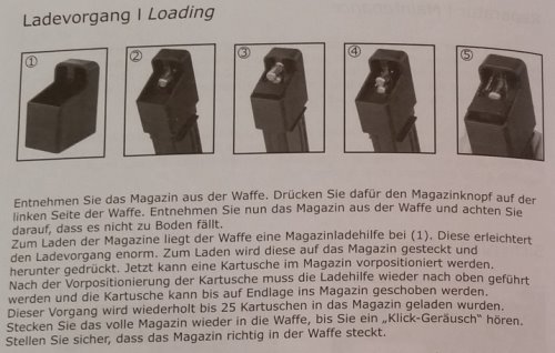Foto unten: Das der Waffe beiliegende Manual sowie die beiliegende Ladehilfe.