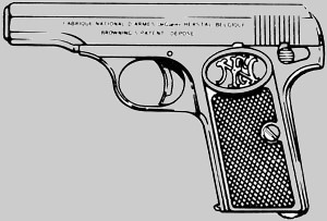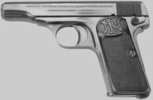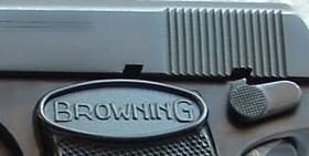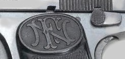 Abbildungen unten: Die “FN Browning 1910” wurde mit verschiedenen Griffschalen angeboten. Es gabe eine Version mit den verschränkten Buchstaben “FN” (“Fabrique Nationale”) und eine mit einem eher schlicht ausgeführten “Browning”-Schriftzug in der ovalen Auswölbung.