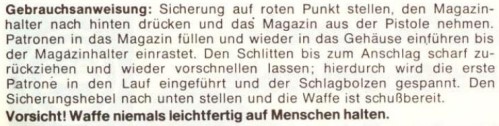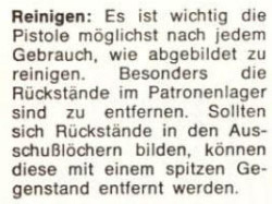 Markteinführung: Anfang 1980er Jahre Serien-Nr.: - keine - System: Selbstlader, Reizstoff-/Signalpistole Kaliber: 8 mm Knall Magazinkapazität: 7 Patronen