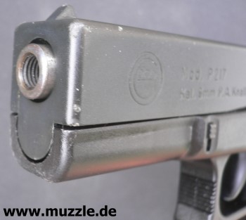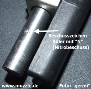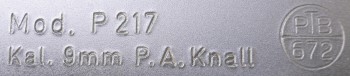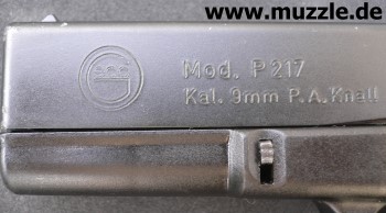 Foto unten: Der Lauf einer mit “G” gekennzeichnete “P217” mit gesondertem Beschusszeichen auf dem Lauf.